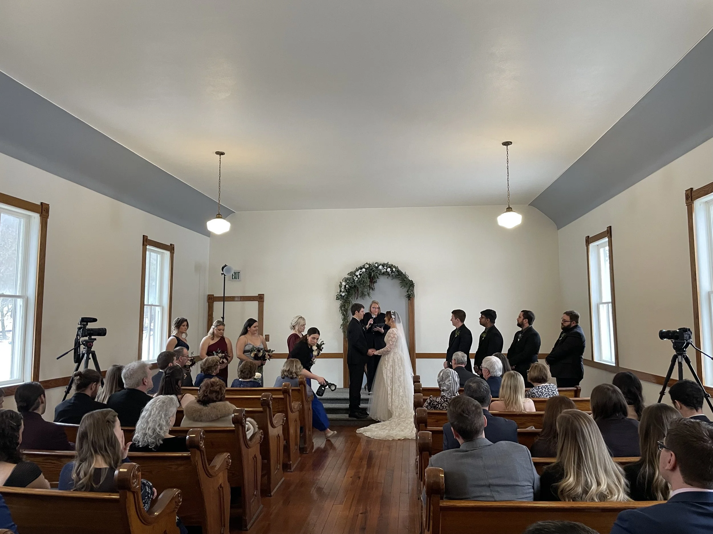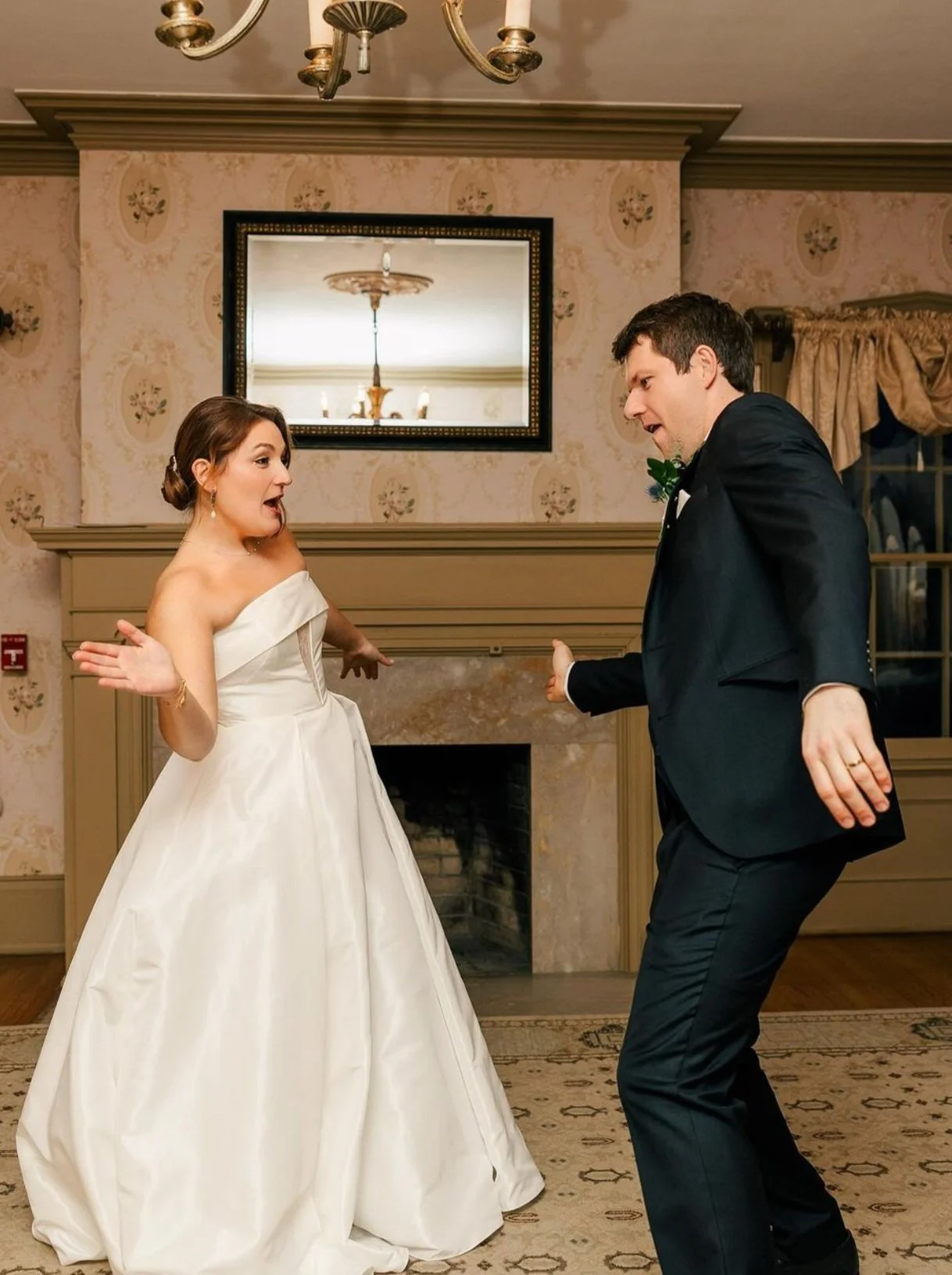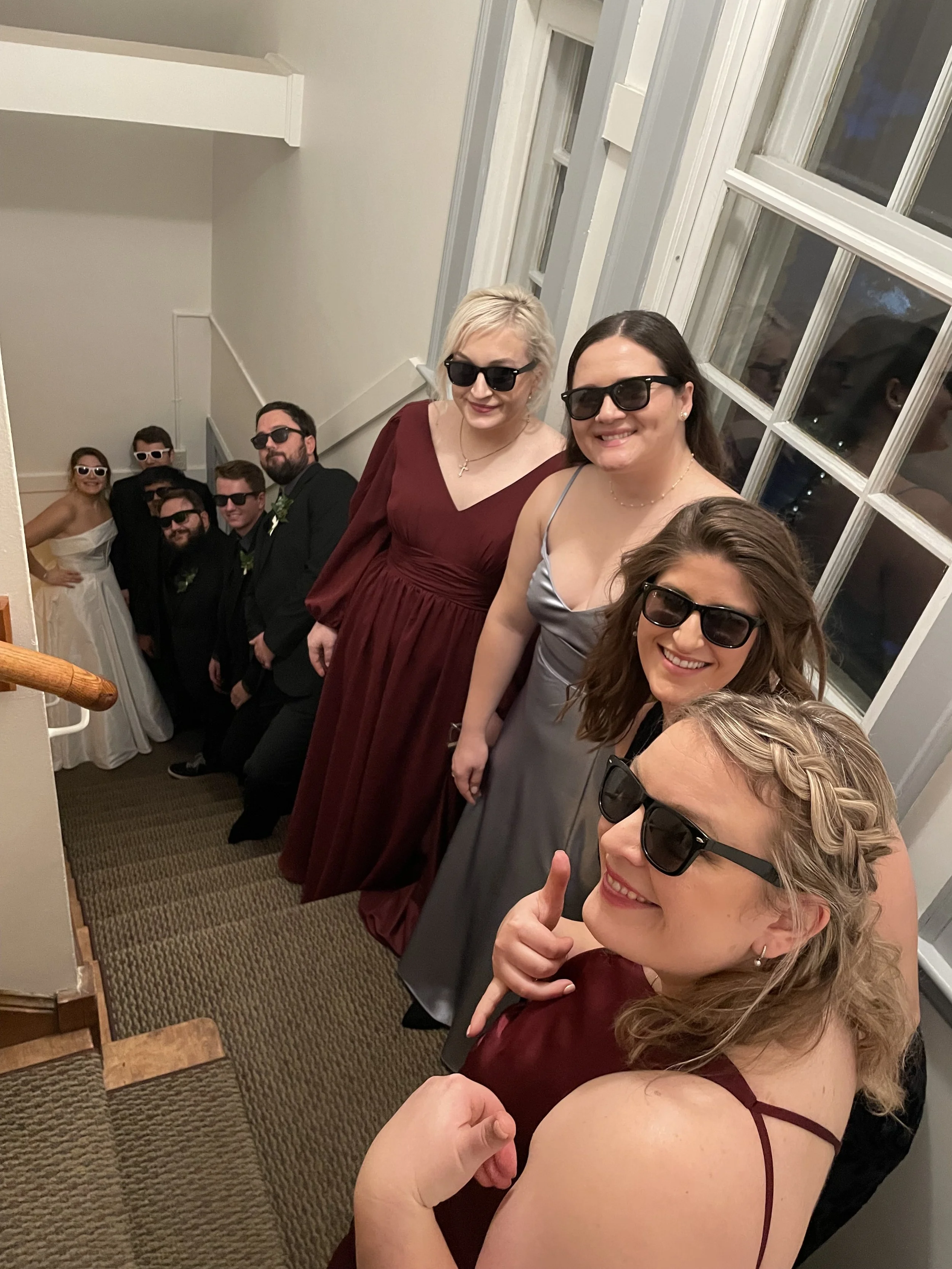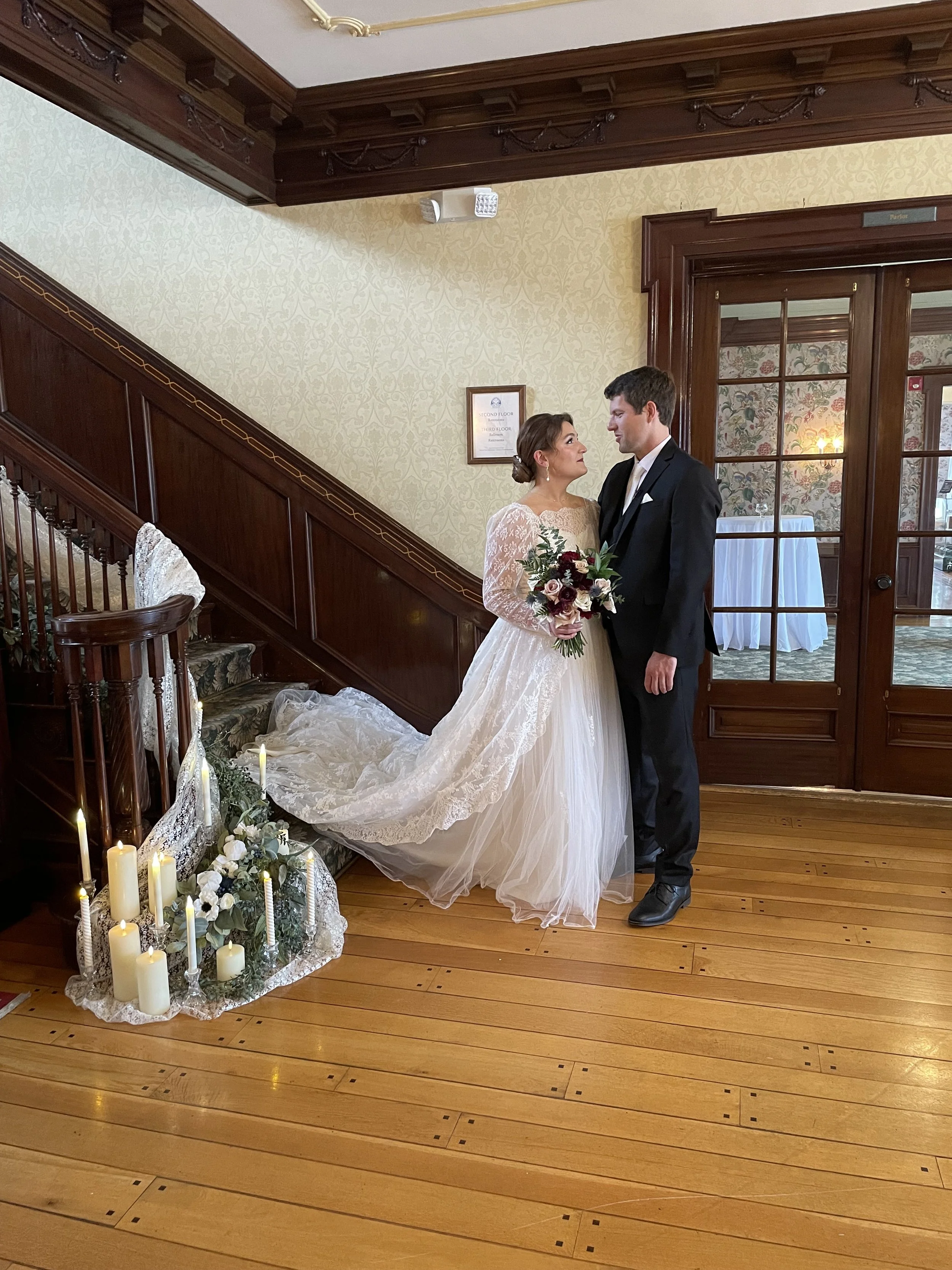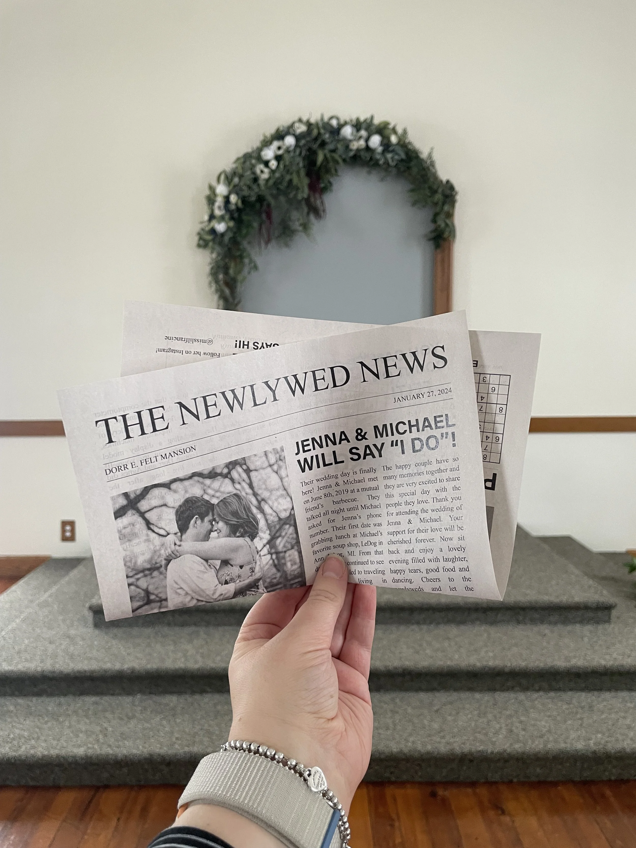 We’re still swooning over the first look on the grand staircase! Jenna and Michael hired us to coordinate their wedding at the stunning Dorr E. Felt Estate. With their priority set firmly on hanging out with loved ones, the whole day was a blast from start to finish! Some highlights: Jenna wearing her grandmother’s wedding dress for the ceremony, copies of The Newlywed News at every pew, choreographed first dance, photobomb challenge, and non-stop dancing!